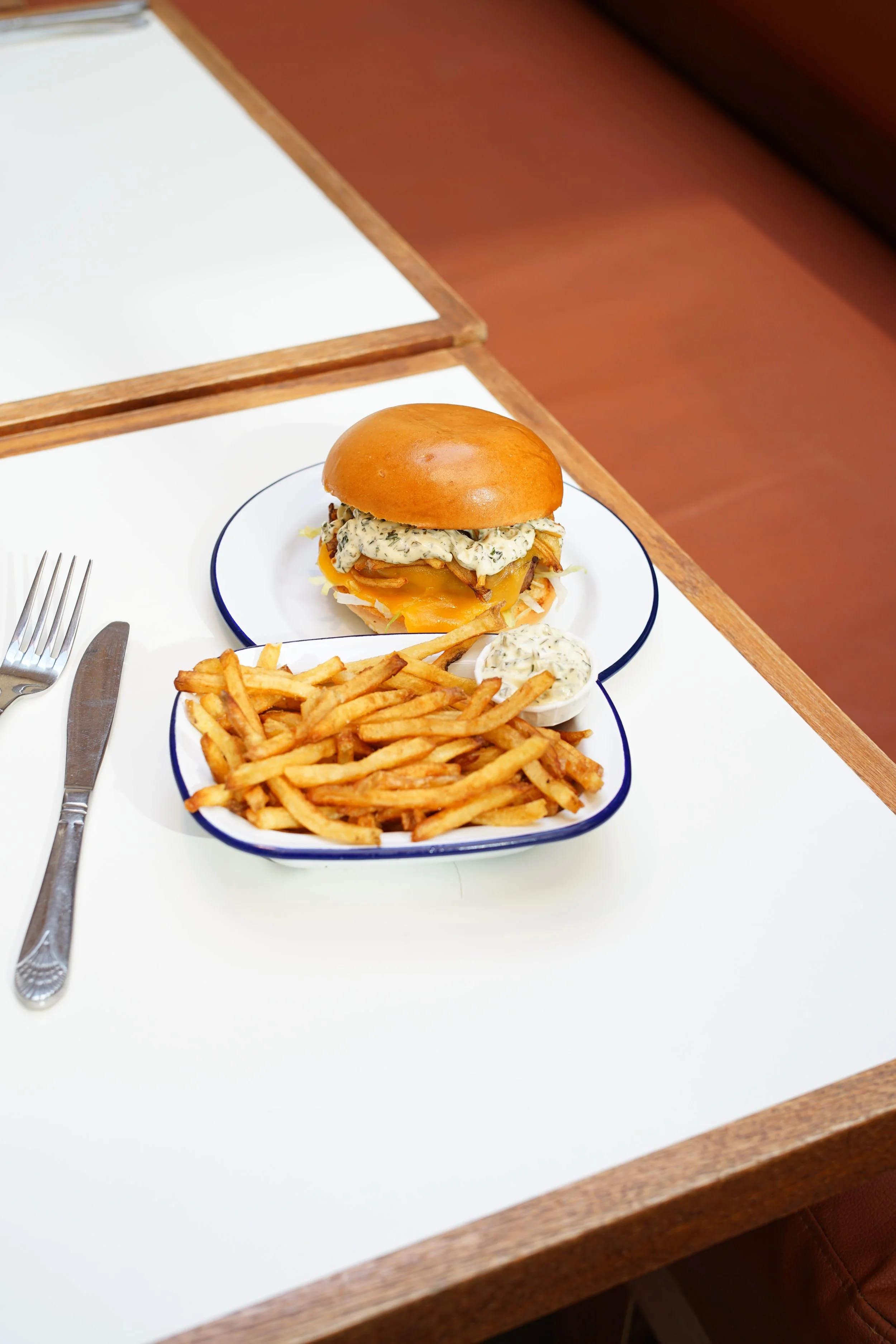 La pluie forte sur les vitres, le jetlag et le Pouilly-fumé venant de beaucoup trop loin rendaient le brouhaha et les mille bougies irréelles. On échangea rapidement avec le serveur parfait en faisant style qu’on captait tout. Quelques minutes plus tard, deux montagnes de frites et un bol de sauce béarnaise remplissaient la table.